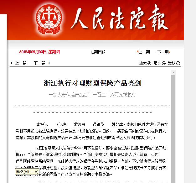 近年来,随着资金理财化倾向明显,加上我省法院通过“点对点”网络查控系统查询、冻结被执行人的银行存款越来越便捷、有效,不少被执行人转而的购买具有理财性质的人身保险产品。为加强和规范对此类人身保险产品的执行,现就有关问题通知如下: